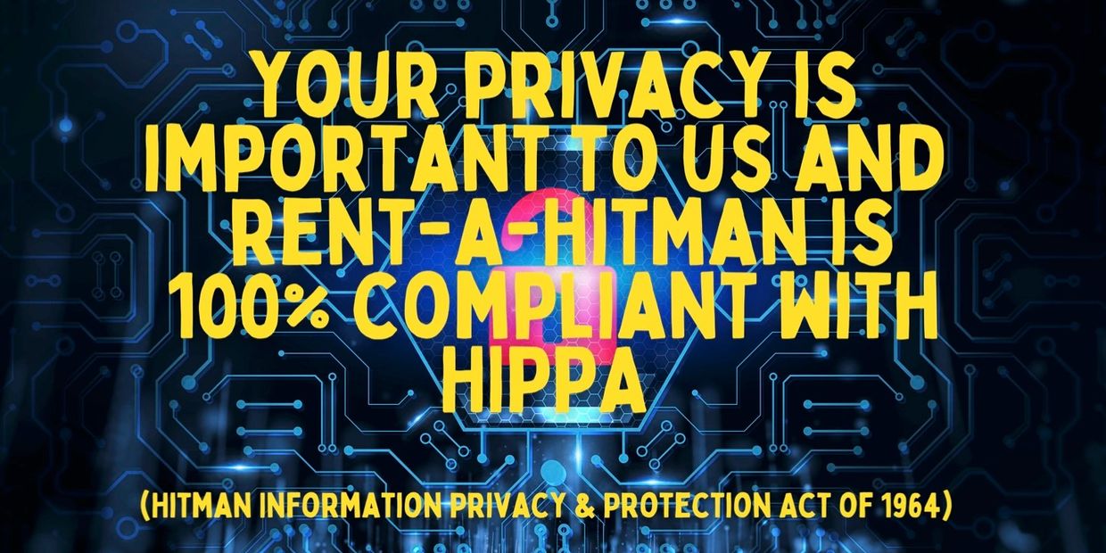 But don’t worry—I’ve got your back! RENT-A-HITMAN is your friendly, safe haven right here on the World Wide Web. We’re all about keeping your info under lock and key, with privacy guaranteed by our trusty HIPPA (that’s the Hitman Information Privacy & Protection Act of 1964). Our setup’s not just secure—it’s 25% more secure than those other shaky outfits out there. While they’re tripping over their own feet, we’re here with top-notch reliability you can count on.