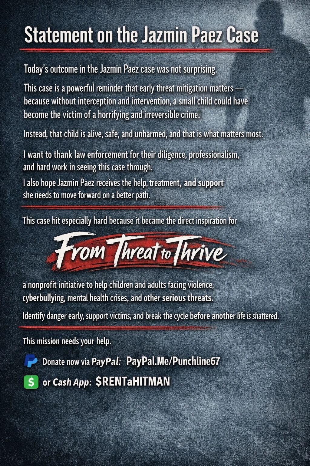 Behind the humor is an independently operated platform that has helped surface real threats, interrupt violent plans, and quietly route credible information to the right hands before harm occurs. Keeping this system online requires ongoing infrastructure, security, and compliance costs. If you believe the internet can be used to prevent crimes before they happen and make the real world safer, you’re invited to help keep it running. Support can be made at 👉 paypal.me/punchline67 — even $1 helps keep prevention online and lives protected.